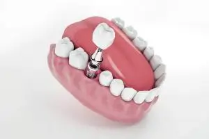 A dental implant acts as a substitute for the root of a missing tooth. This artificial root replaces natural teeth and integrates with the gums.
